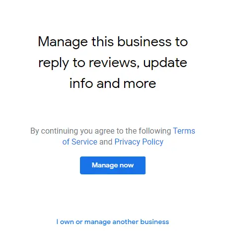 This image means your GMB is listed, but not claimed. Google sources a list of businesses from users and other sources to populate their GMB directory. Click “Manage Now” and you’ll be able to set up your GMB.